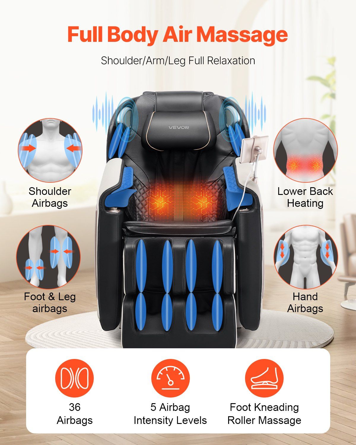 VEVOR Full Body Massage Chair, 3D Zero Gravity Recliner with SL Track, 18 Auto Modes, Heat, Foot Rollers, Armrest Control, LCD Display, 36 Airbags VEVOR Full Body Massage Chair, 3D Zero Gravity Recliner with SL Track, 18 Auto Modes, Heat, Foot Rollers, Armrest Control, LCD Display, 36 Airbags VEVOR Full Body Massage Chair, 3D Zero Gravity Recliner with SL Track, 18 Auto Modes, Heat, Foot Rollers, Armrest Control, LCD Display, 36 Airbags